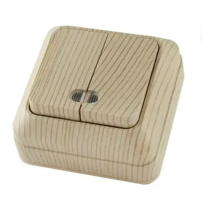 Выключатель накладной 2кл. сосна с индикатором Ладога TDM