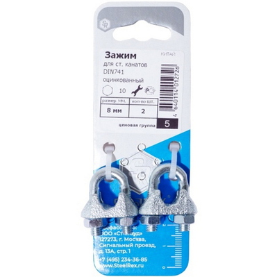 Зажим 8 для стальных канатов DIN 741, цинк/ 2 шт